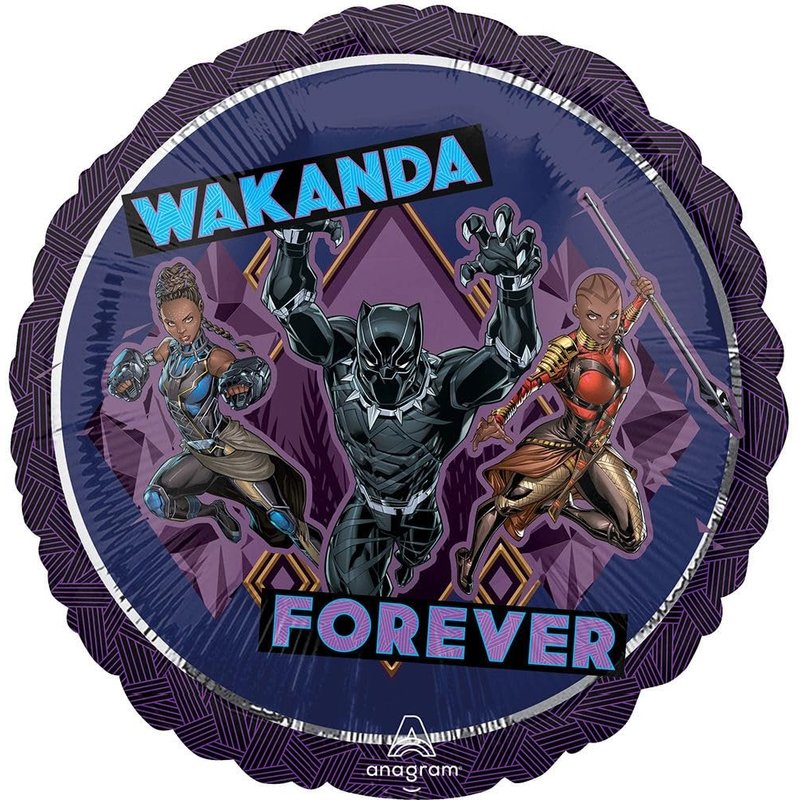 - (1) 32" Black Panther Foil Balloon, (1) 28" Jumbo Round Black Panther Foil Baoollon, (2) 17" Round Black Panther Foil Balloons, (2) 17" Wakanda Forever Round Foil Balloons, (1) Mayflower Products Happy Birthday Present Foil Balloon and (2) 19" Silver Star Foil Balloons. Ribbon Not Included. All Anagram Licensed Balloons are Made in USA. Founded in 1977, Anagram International leads the world in innovating and manufacturing foil balloons.