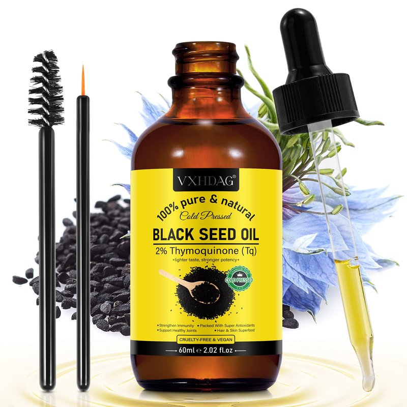 Black Seed Oil - 100% Virgin Cold Pressed Premium Black Seed Oil, Omega 3 6 9 Antioxidant, Immune Boost, Joints, Skin & Hair, Glass Bottle 2.02 fl oz
