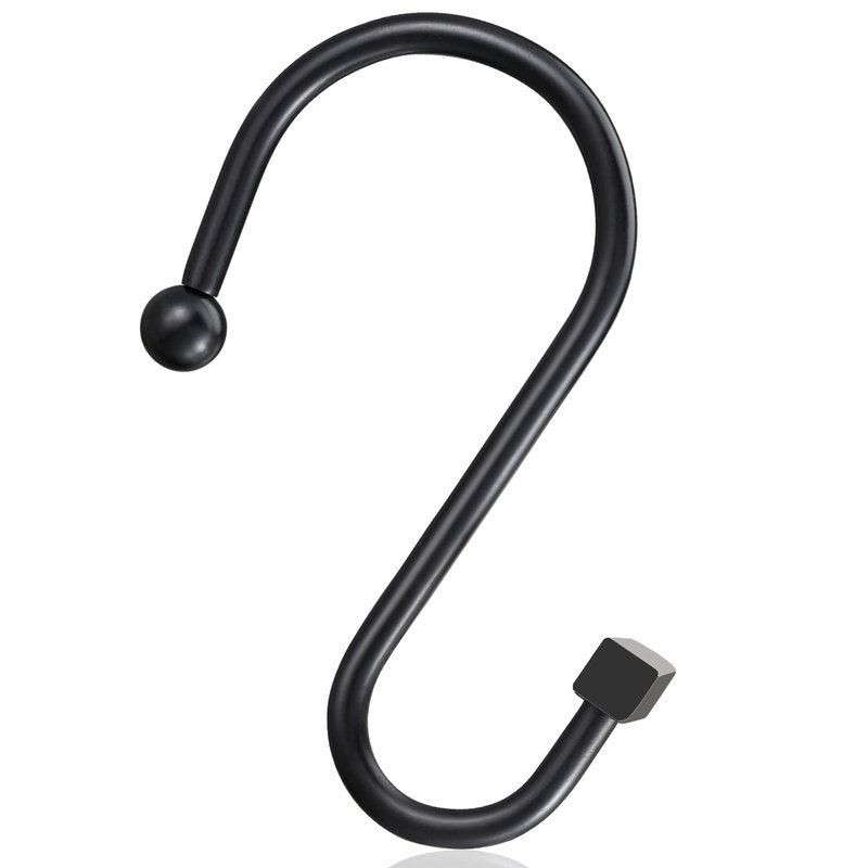 - MATTE BLACK SHOWER CURTAIN HOOKS - Modern style shower hooks make small upgrade in your bathroom goes a long way. The T shape designed hooks' end keep curtain stays on the rod and never fall, and the other end is ball shape which protect the shower rods from damage during use.
