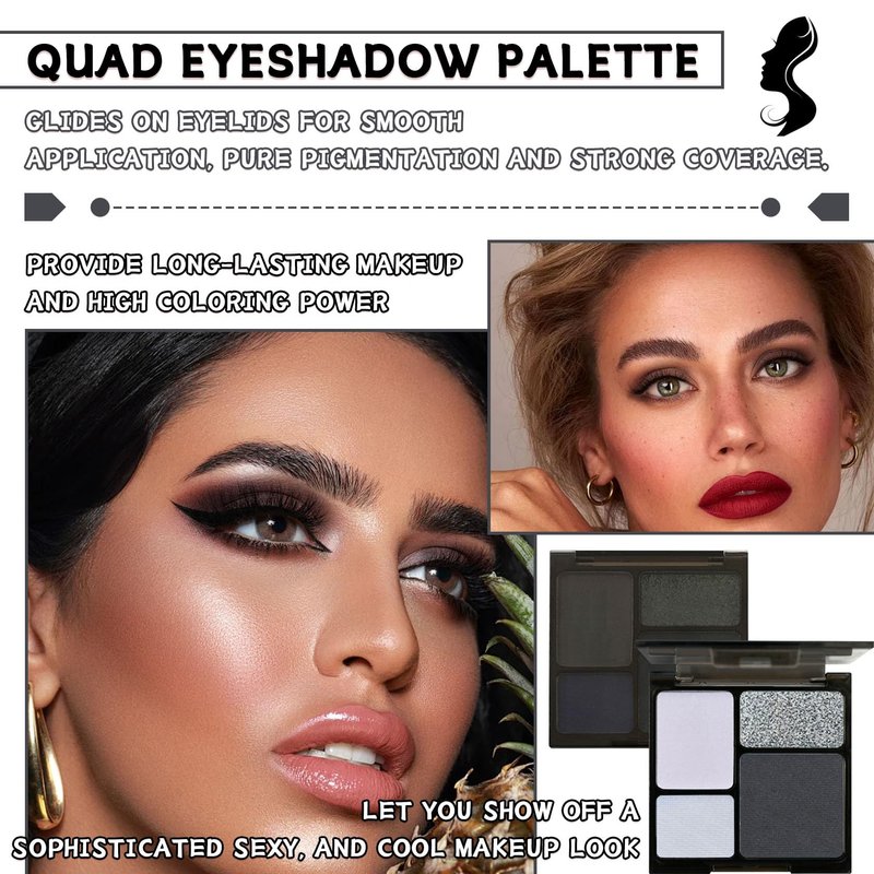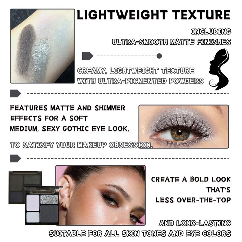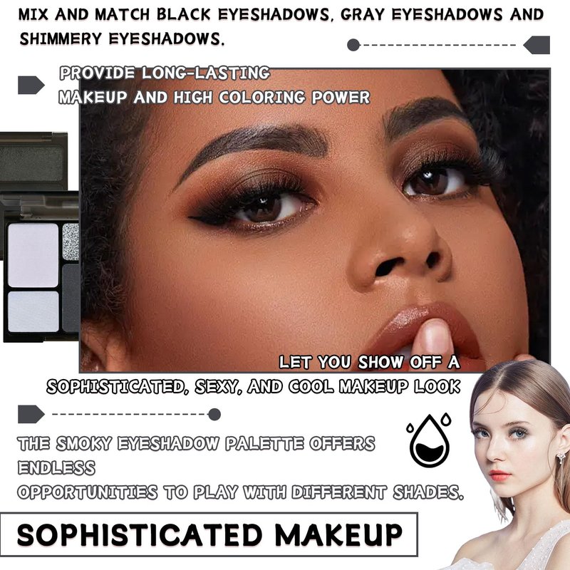 - 💧【Cool Tone Eyeshadow Palette】Black smokey eyeshadow palette contains both matte and shimmery two unique makeup effects, 4 kinds of high pigmented multi-style pigments, which can bring you infinite possibilities of makeup creation.