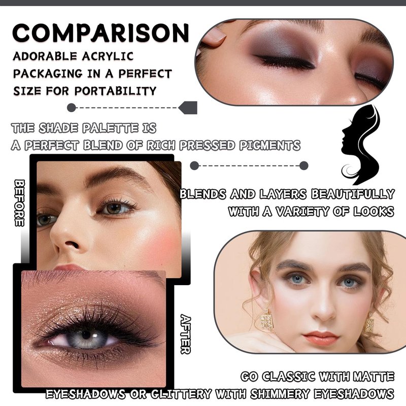 - 💧【Easy to Apply】Eye shadow palette's powder is fine and soft, easy to apply eyeshadow powder, with makeup brushes gently apply can be firmly adhered to your eyes, high color rendering is easier to highlight the matte shimmering and delicate smokey eye makeup, whether it's a beginner or a professional make-up artist, are very suitable for use.