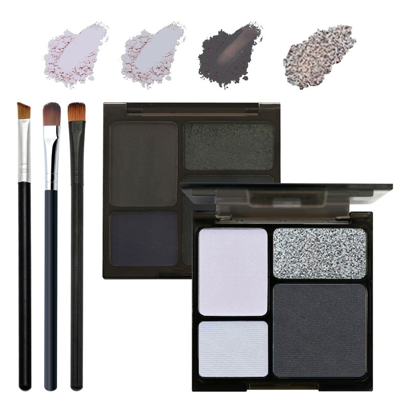 Black Smokey Eyeshadow Palette, 4 Colors Matte Glitter Eyeshadow Makeup Palette with Brushes,Waterproof Long Lasting Pigmented Gray Silver Eye Shadow Palette,Goth Halloween Daily Makeup Pallet