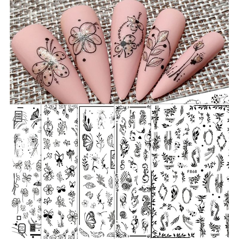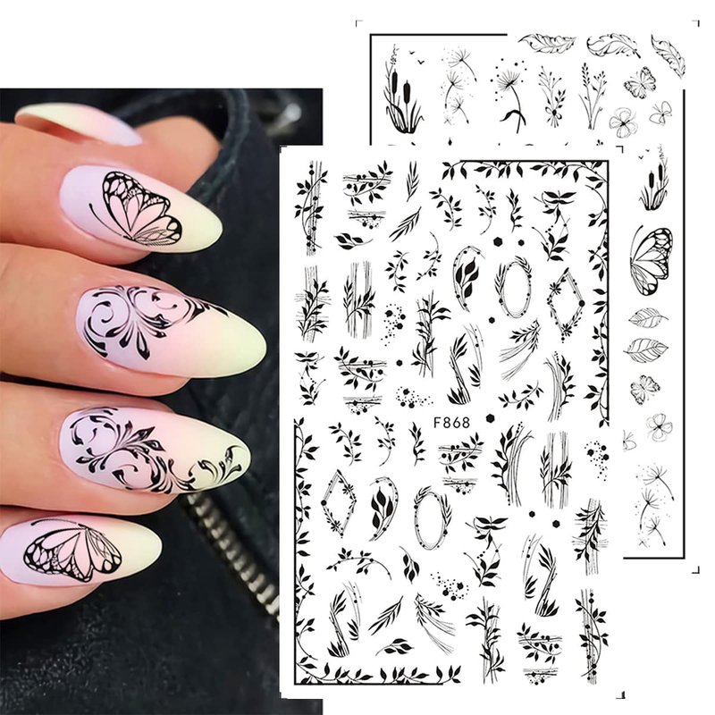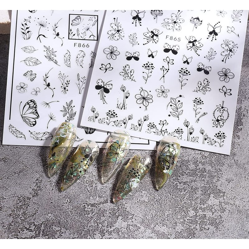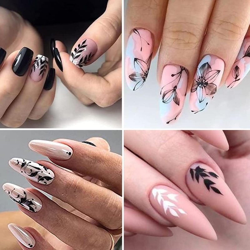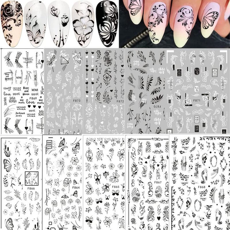 - Package: You will get 10 sheets black white nail stickers, Assorted patterns with leaves, ivy, flowers, vine, Irregular geometry nail decals, can provide you with a variety of choices, satisfy your rich imagination .