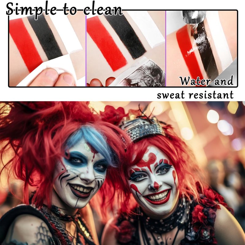 - Versatile Use: Face paint can be used for clown, skeleton, cosplay and zombie halloween make-up to meet your needs for a variety of costumes and occasions
