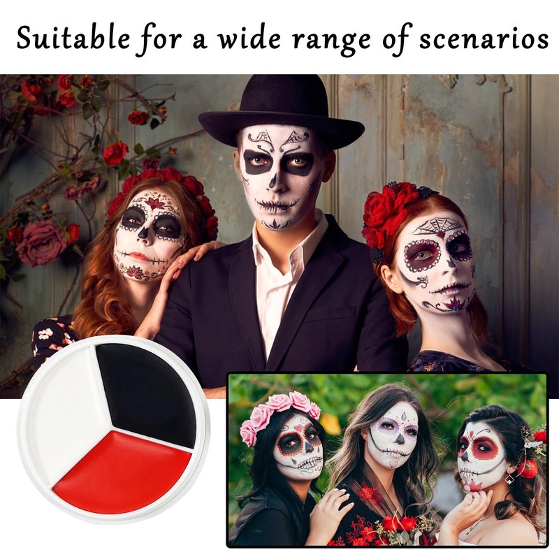 - Ingredients: Black white red face body paint has a high quality formula that is gentle on the skin and waterproof, suitable for all skin types, friendly and easy to use for makeup beginners
