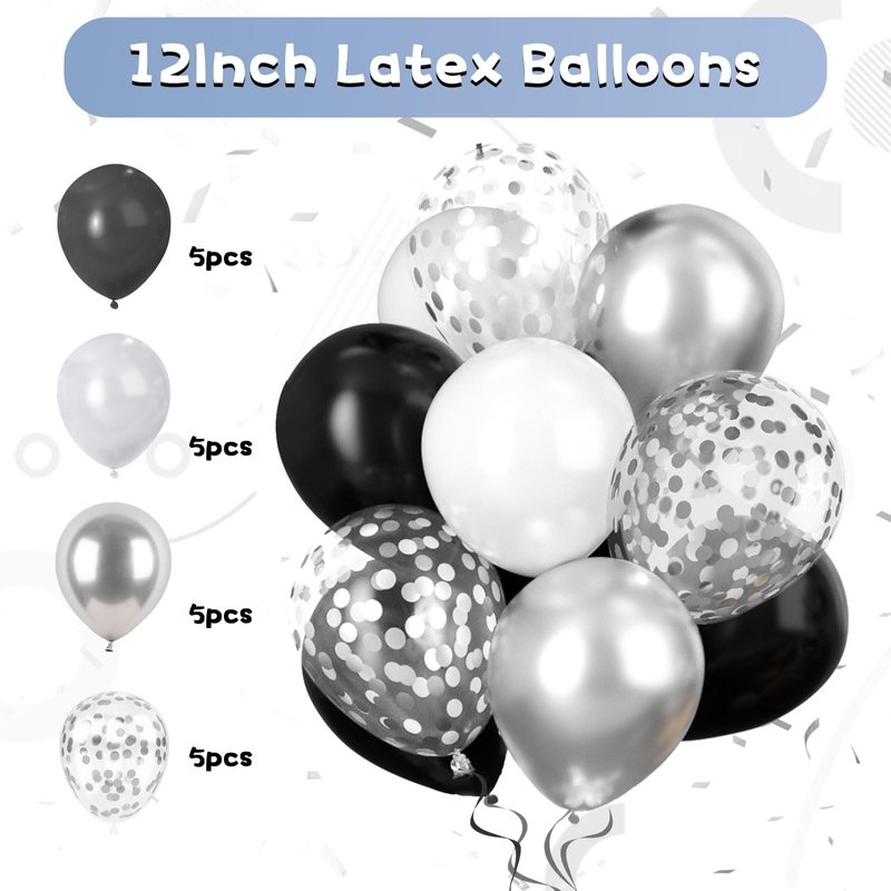 - Celebrate in Style: Make your event extraordinary with our black and silver balloons set, designed to bring vibrant energy to any celebration. Whether you're hosting black and silver party decorations or looking for black birthday decorations, we’re here to help every step of the way, ensuring you and your guests have a joyful experience. Let the festivities begin!