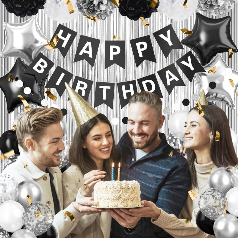 Versatile for Every Occasion: Perfect for milestone birthdays such as 18th, 21st, 30th, 40th, and 50th, as well as celebrations like weddings, bridal showers, and bachelorette parties. Whether you're planning birthday decorations for men or hosting a stylish black and silver event, this versatile set brings sophistication and excitement to any gathering.