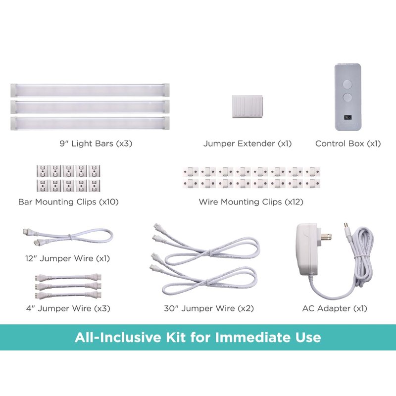 BLACK+DECKER LED Under Cabinet Light Kit, Motion Sensor, Dimmable, Linkable, 3 Color Settings, Tool-Free, for Kitchen, Cabinets and Closets, (3) 9" Bars