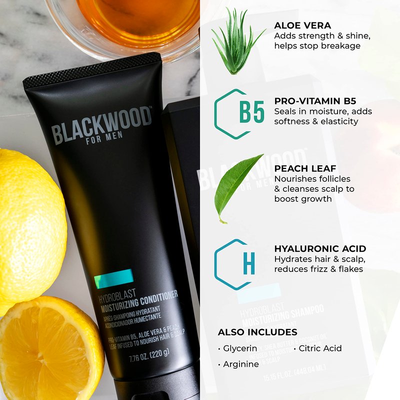Blackwood For Men HydroBlast Moisturizing Conditioner - Deep Treatment for Damaged & Dry Hair - Natural Vegan Formula for Curly & Coarse Hair - Sulfate Free, Paraben Free, & Cruelty Free (4.59 Oz)