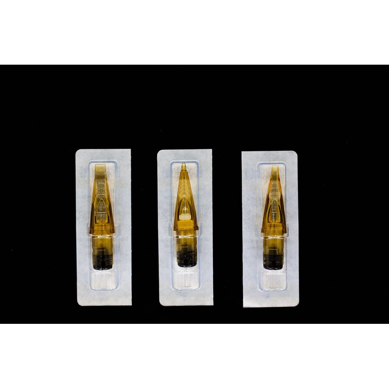 BlakGold cartridges are designed so the needles glide flat against the base of the tip; this prevents any twisting, bending, or instability during tattoo procedures which allow maximum precision.