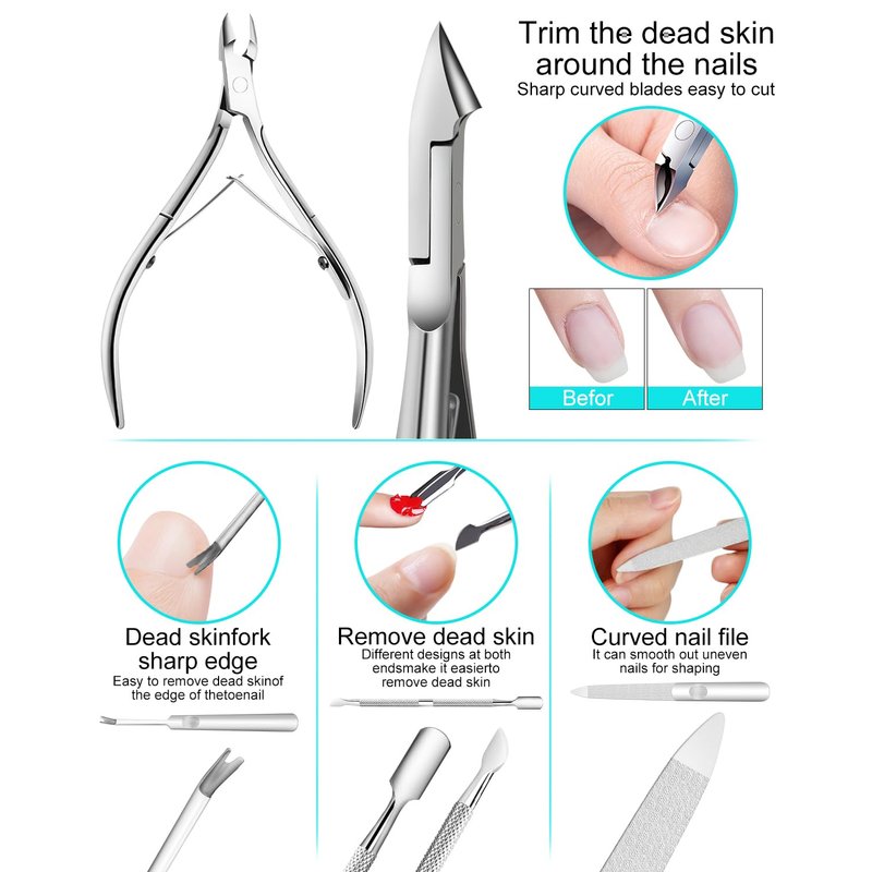 - High Quality Material: Our pedicure tools are made of professional surgical grade stainless steel with reliable and safe materials. Even if used for a long time, it will not rust, and it is durable. Each tool has special functions, safe and efficient.
