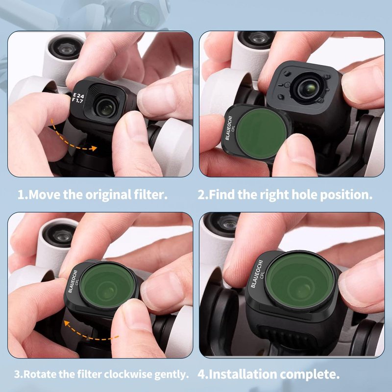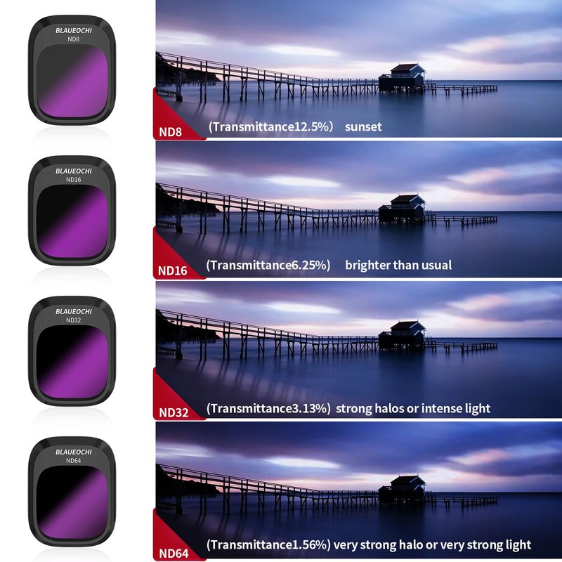 - 2.ND filter: The Blaueochi MINI 4 PRO ND filter reduces the amount of light entering the camera lens without affecting the colors. It allows for longer exposure times, which is useful in capturing smooth and flowing waterfalls, rivers, or creating motion blur in fast-moving subjects.