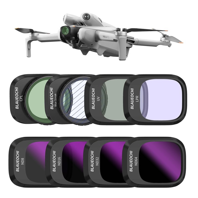 BLAUEOCHI ND Filters Set for DJI Mini 4 Pro -8 Pack Filters-(UV, CPL, LPR,BS,ND8, ND16, ND32, ND64) Camera Lens Filters Kit- Compatible with DJI Mini 4 Pro - Multi-Coated HD Optical Glass