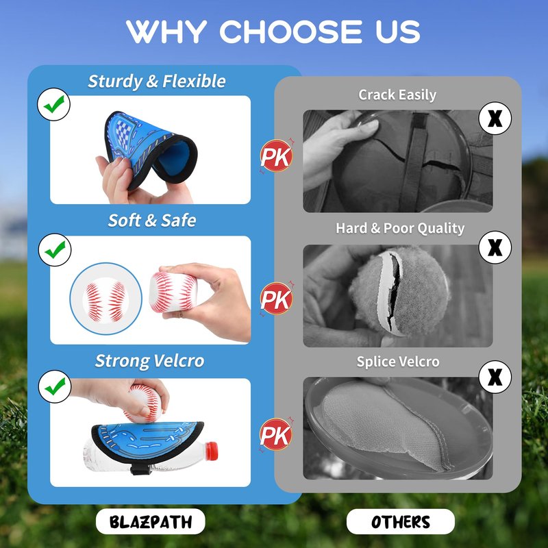 - Soft Velcro Baseball: Sticky baseballs are filled with soft cotton, not only keep toddlers’ bodies more safer while training, but also reduces hand tiredness for playing longer