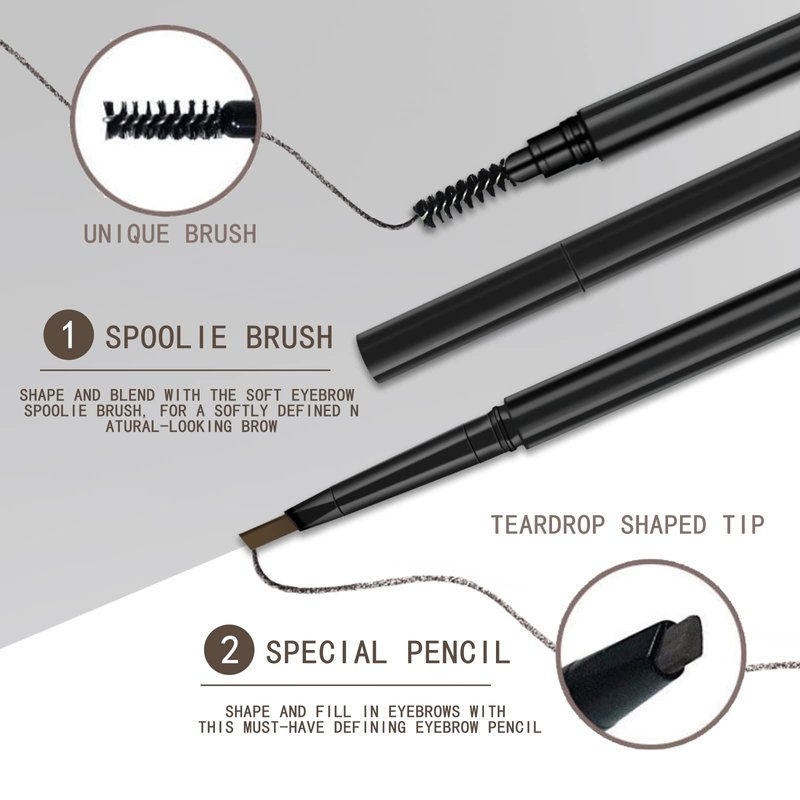 - LONG LASTING AND WATER PROOF: Specially designed eyebrow pencil core keeps the eyebrow color longlasting and weaterproof. Our eyebrow pen can keep your brow charming through the all day.
