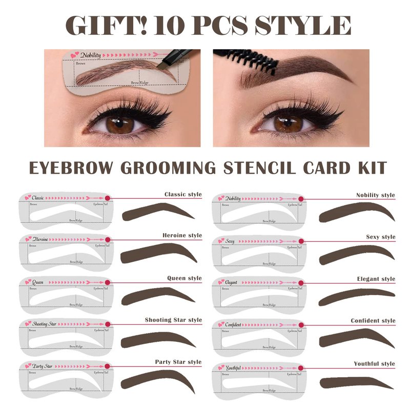 BLEGGEIT 2 Eyebrow Pencils and 10 Eyebrow Stamps Kit, Temptation Eye Brow Pen, Professional Mechanical Eyebrow Stylist Makeup Definer, Waterproof and Longlasting for Natural Brows, Eyebrow Shaper
