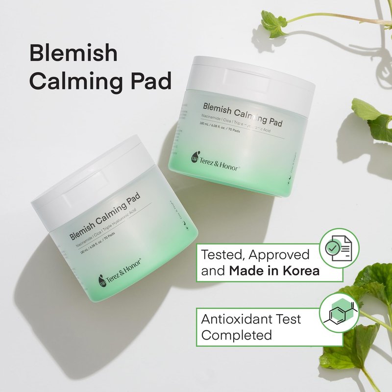 - NATURAL INGREDIENTS & PATENTED TECHNOLOGY: Terez & Honor Blemish Calming Pad is enriched with Centella Asiatica extract (Cica) derived from patented technology and Niacinamide to calm and anti blemishes, while exfoliating and controlling excess sebum.