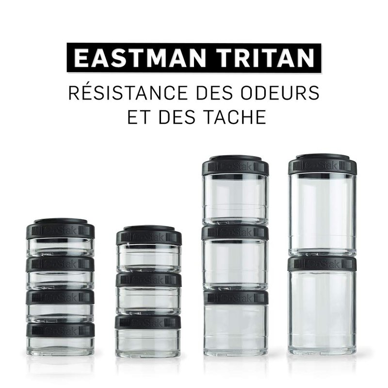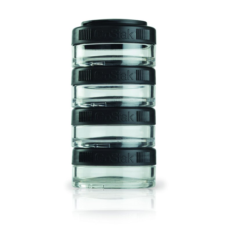 BlenderBottle GoStak Food Storage Containers for Protein Powder, Healthy Snacks, and Portion Control, 40cc (Pack of 4), Black
