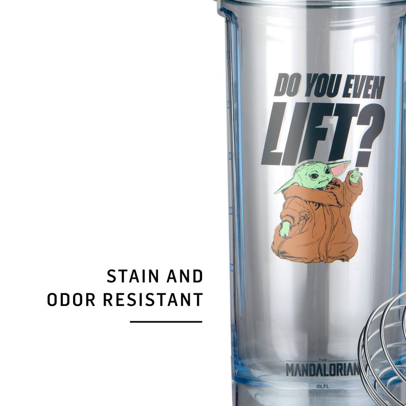 - Authentic Star Wars Shaker Bottle: Tritan plastic shaker bottle with officially licensed Mandalorian and Child Yoda icons
