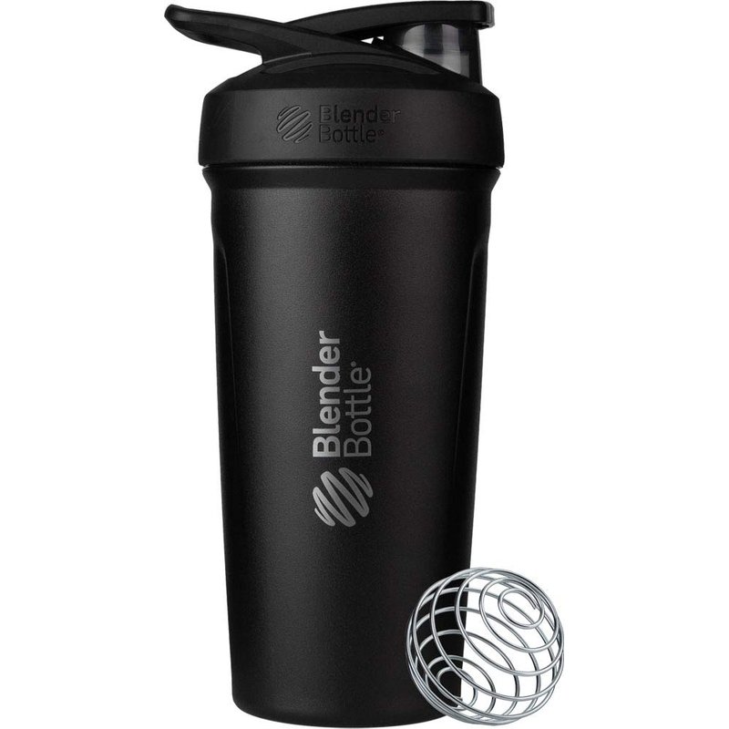 BlenderBottle Strada Shaker Cup Insulated Stainless Steel Water Bottle with Wire Whisk, 24-Ounce, Black