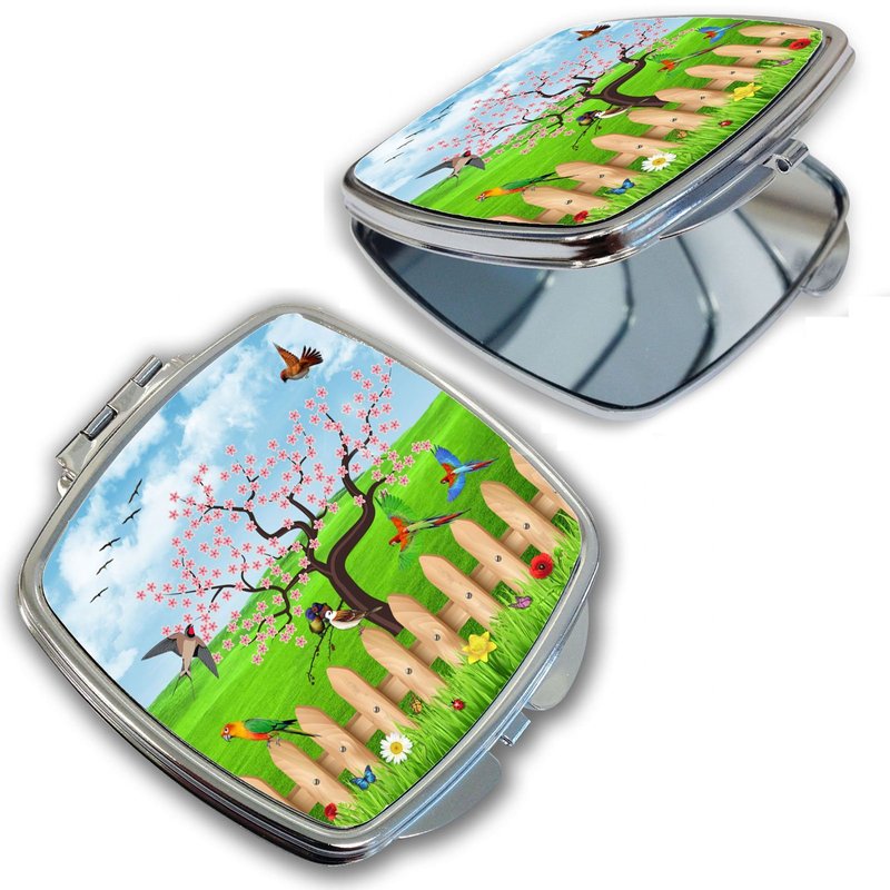 BleuReign(TM) Pretty Flowers and Birds on a Fence Compact Mirror