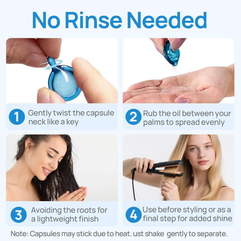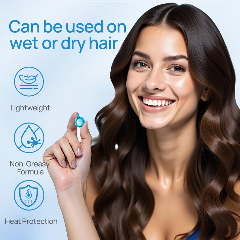 Bleuvél Hair Oil for Frizzy – Hair Vitamin E, Jojoba & Castor Oils – Smooth, Nourish & Shine – Anti Frizz Serum for Women - Damaged, Dry and Curly – No Rinse with Scalp Massage Comb – 40 Capsules