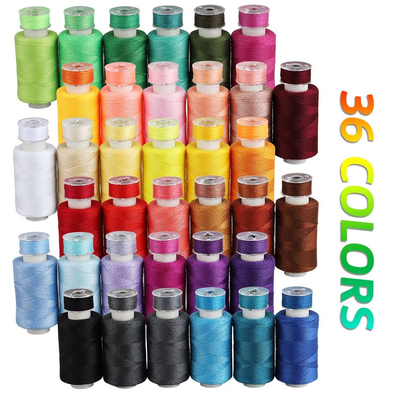 - 【Assorted Colors】36 mixed colours sewing thread assortment for sewing machine, Includes white, black, grey, purple, red thread colors. The match colors of the sewing machine thread with bobbin set'. It can meet you many requirement of projects needing variety of colors.