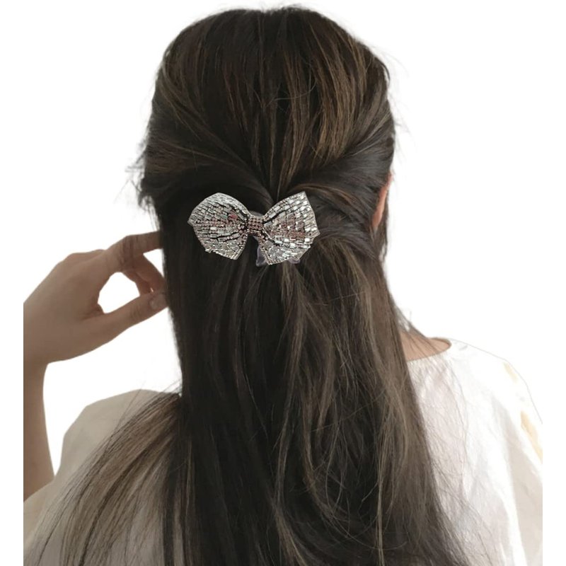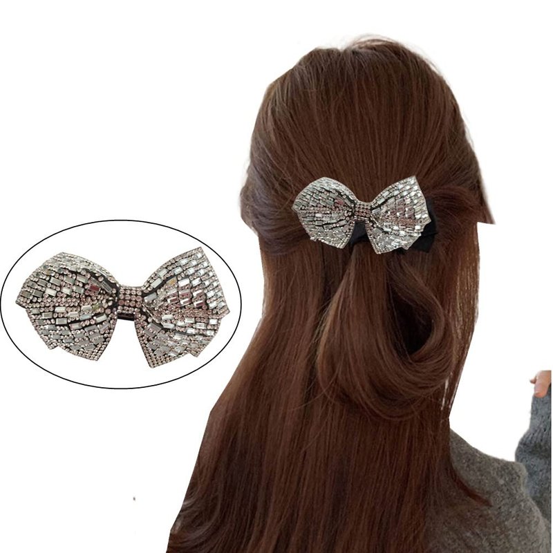- 5.Package include: 1 piece Rhinestone Bow Hair Clip. Rhinestone Spring Clip is suitable for women, ladies. Great for straight or curly hair, long or medium length hair, high bun, low bun, half bun, ponytail, twist braid hairstyles.