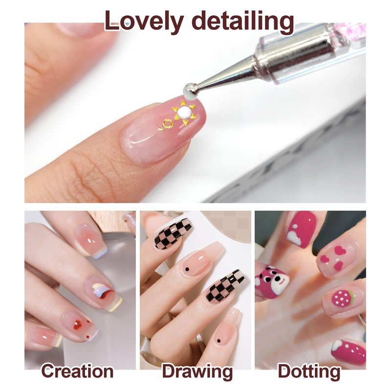 - The french tip brush adopts a double-headed design, one end is a metal ball head for embellishment; the other end is a pull wire brush head for fine painting, and different sizes can meet your different needs.