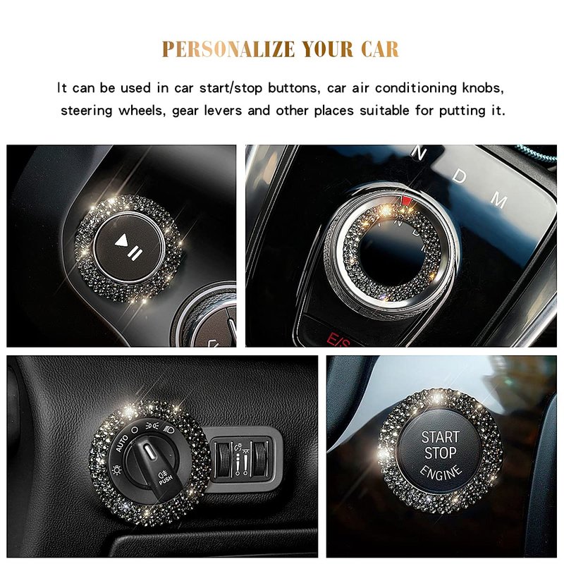 - [WIDE APPLICATION] It can be used for car start/stop buttons, car air conditioning knobs, steering wheels, gear levers, etc. Glittering diamond accessories make your car interior more luxurious.
