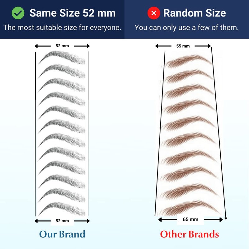 - The front of the sticker is facing the original eyebrows, covering the original eyebrows, and the back is also printed with the same pattern so that a good position can be found in front of the mirror.