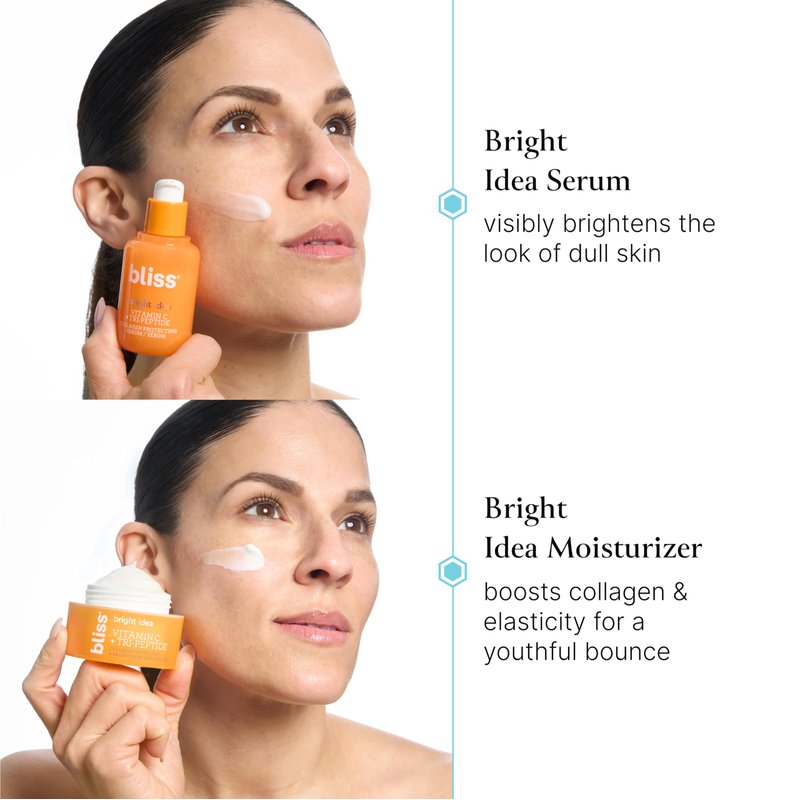 - BRIGHT IDEA VITAMIN C + TRI-PEPTIDE SERUM FOR RADIANCE: This powerful serum combines vitamin C with tri-peptides to brighten and hydrate, visibly enhancing skin tone and texture for a luminous complexion