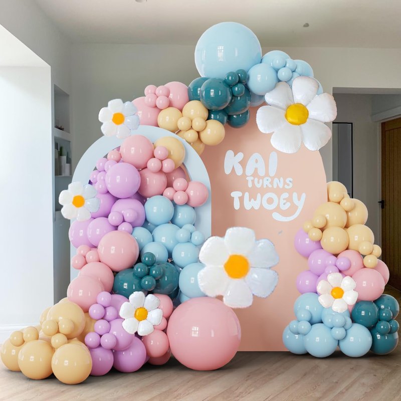 - 【Puppy Theme Party Decorations】: This 166-piece balloon garland kit includes a variety of balloons in different sizes: 2pcs 18" balloons, 40pcs 12" balloons, 65pcs 10" balloons, 50pcs 5" balloons. Colors include pink, light blue, peacock blue, nude, and light purple. The set also features 2pcs large sunflower foil balloon and 4pcs medium sunflower foil balloons to add a special touch to your decorations.