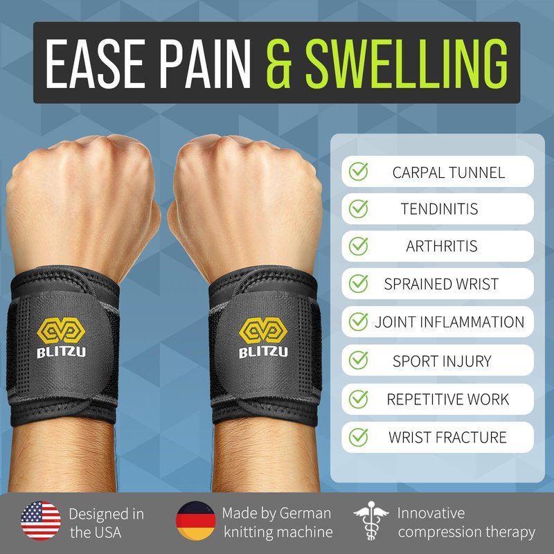 - Quick and Easy to Put on - With BLITZU wrist brace, you can instantly feel pain relief while sleeping, typing, gaming, working and doing many other outdoor activities.