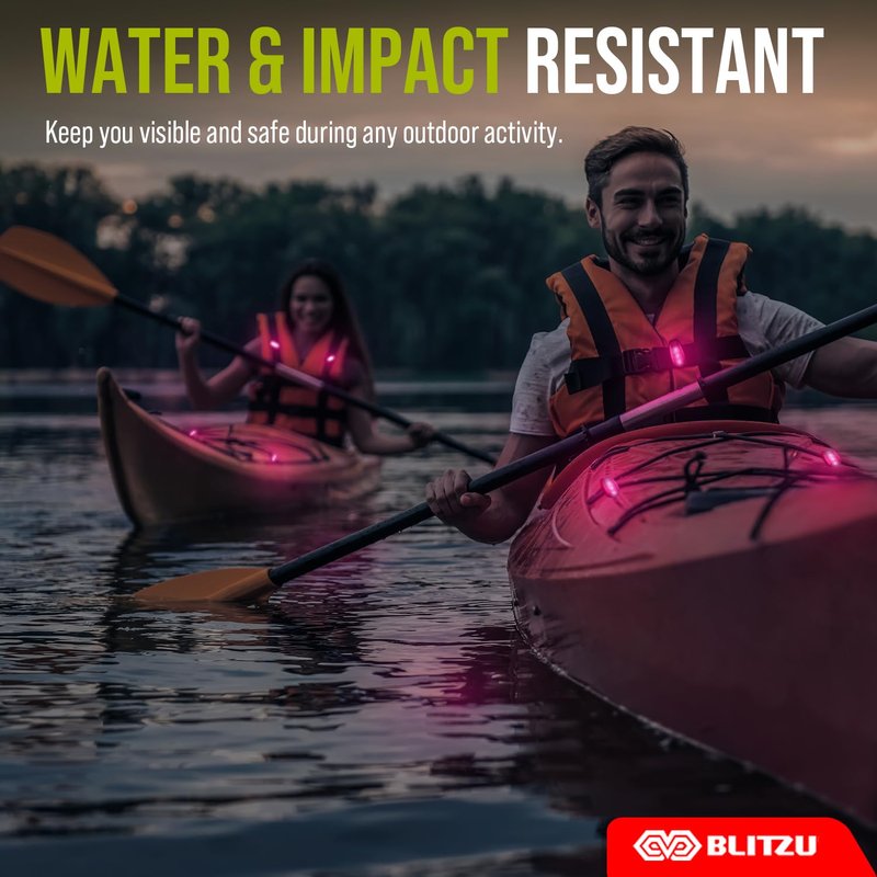- Easy to Attach, Stays On Securely - Preinstalled with batteries for immediate use! These lights clip on easily and stay on securely. These lights can be attached to pet collars, backpacks, helmets, and jogging, or running gear. Use the included fasteners to securely strap the lights onto boat bows and sterns, reflective vest, drones, bicycles, arms, wrists, ankles or anywhere on your outdoor clothing. Perfect for use as a Kayak light or bike rear, back, and tail light.
