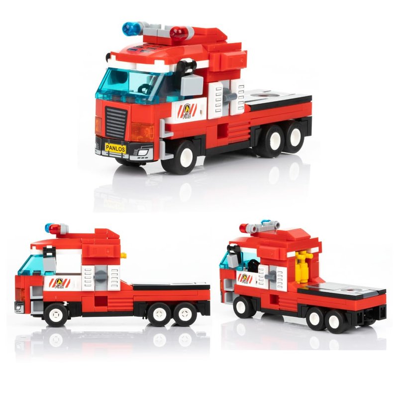 - Ignite imaginations with this action-packed Fire Truck Set! Includes five attachments: Ladder Truck, Crane, Fire Rescue, Helicopter, Speed Boat, and Water Cannon. Perfect for thrilling rescues by land, sea, and air.