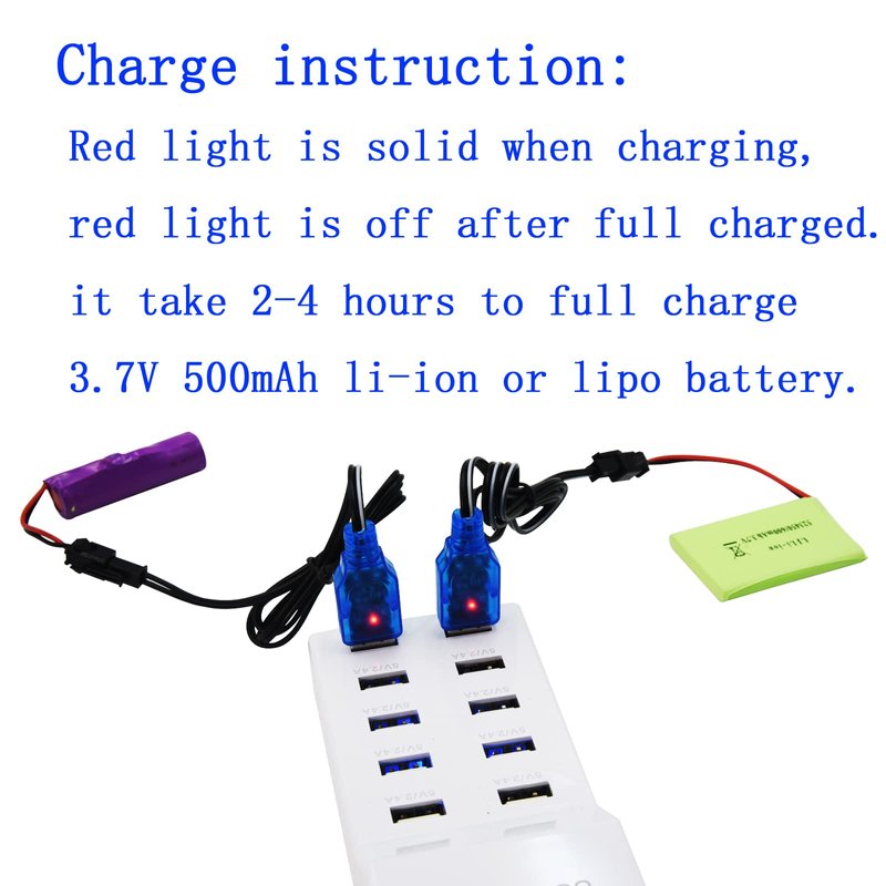- 3.7V USB Charger cable suitable for Small Size RC Cars RC Boat, RC Trucks ,charger cable suitable for some kind Amphibious some kind 1:18 1/16 scale RC Vehicle Sharkool 4WD Stunt RC Car Cars 500mAh Li-ion Battery,,which voltage and plug are same.