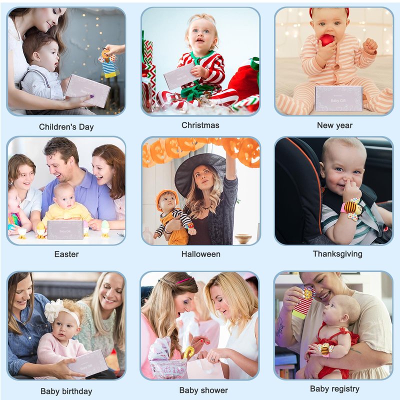 - PERFECT BABY GIFTS -- Give these Soft Baby Rattles Toys as the perfect infant toy gift.Suitable for Baby showers/Baby sprinkle/Sip & See gift/Newborn baby gift/Birthday gift/Registry gift/Easter/Halloween/Thanksgiving/Christmas/Holiday gift/Christening gift/'Just because'gift.