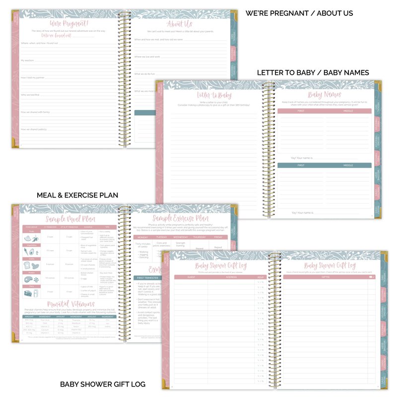 - 🌸 Tabbed Sections Including: “We're Pregnant,” “Medical Log,” First Trimester, Second Trimester & Third Trimester sections, “Baby's First Year,” Monthly Views & Weekly Views for your baby’s first year!