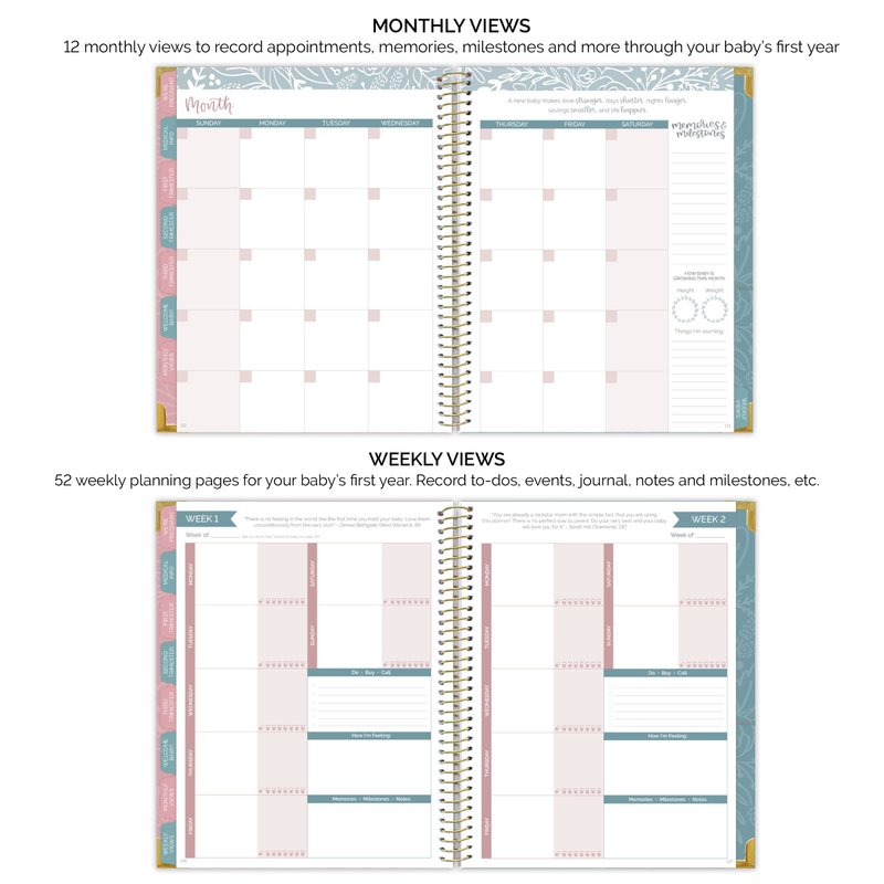 - 🌸 Unique pregnancy and baby’s first year planner and keepsake journal. This book will serve as a planner, guidebook, medical log, journal, and scrapbook for everything from your pregnancy all the way up to your child’s first birthday! Makes a great gift item