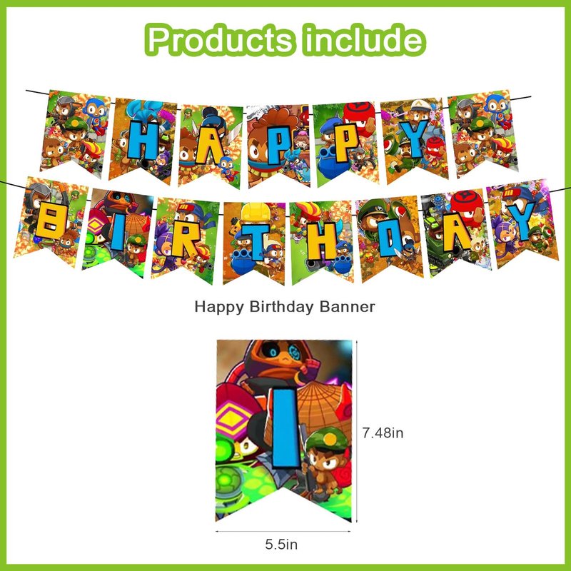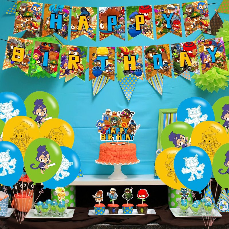 - Wide Application: Bloons TD 6 game Birthday Decorations Party Packs Is Created with The Mission To Leave Everyone with Beautiful Memories! Kids birthday celebrate in style with a game themed Party, this unique 4-in-1 decorations set will definitely light up your kids birthday party and make this an unforgettable moment for your sweet and their friends.