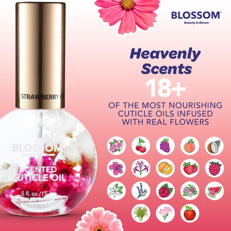 Blossom Hydrating, Moisturizing, Strengthening, Scented Cuticle Oil, Infused with Real Flowers, Made in USA, 0.42 fl. oz, Strawberry