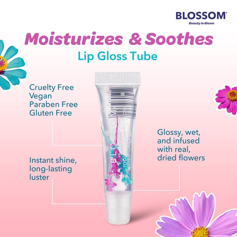 Blossom Scented Moisturizing Lip Gloss Tubes, Infused with Real Flowers, 0.3 fl. oz/9ml, Raspberry