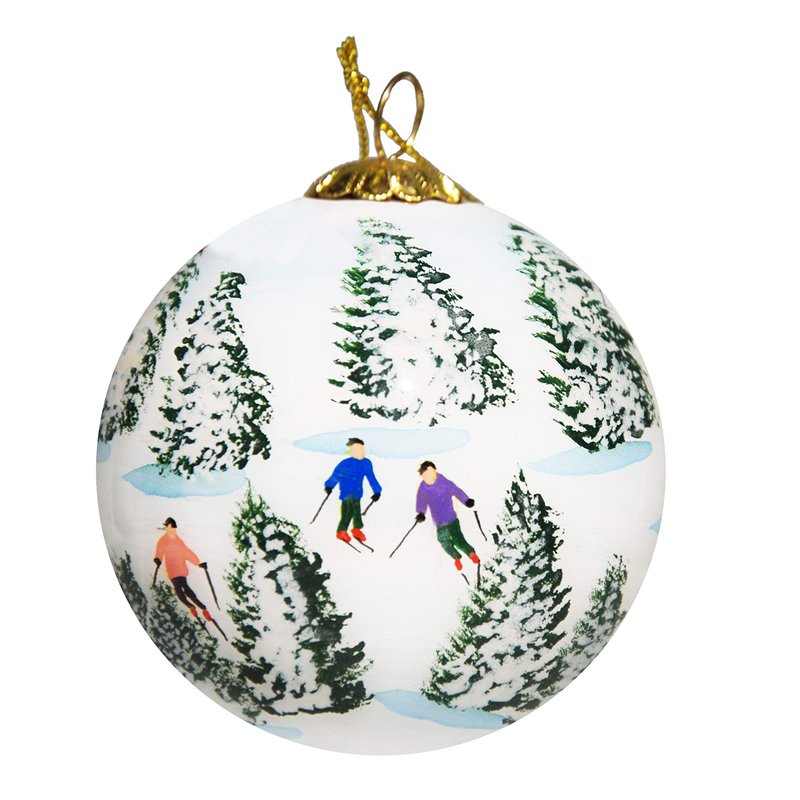 - Artist rendering of Skiing the Glades: Spin this ornament 360 degrees to view the quaint mountain town getaway decorated for the holiday season.