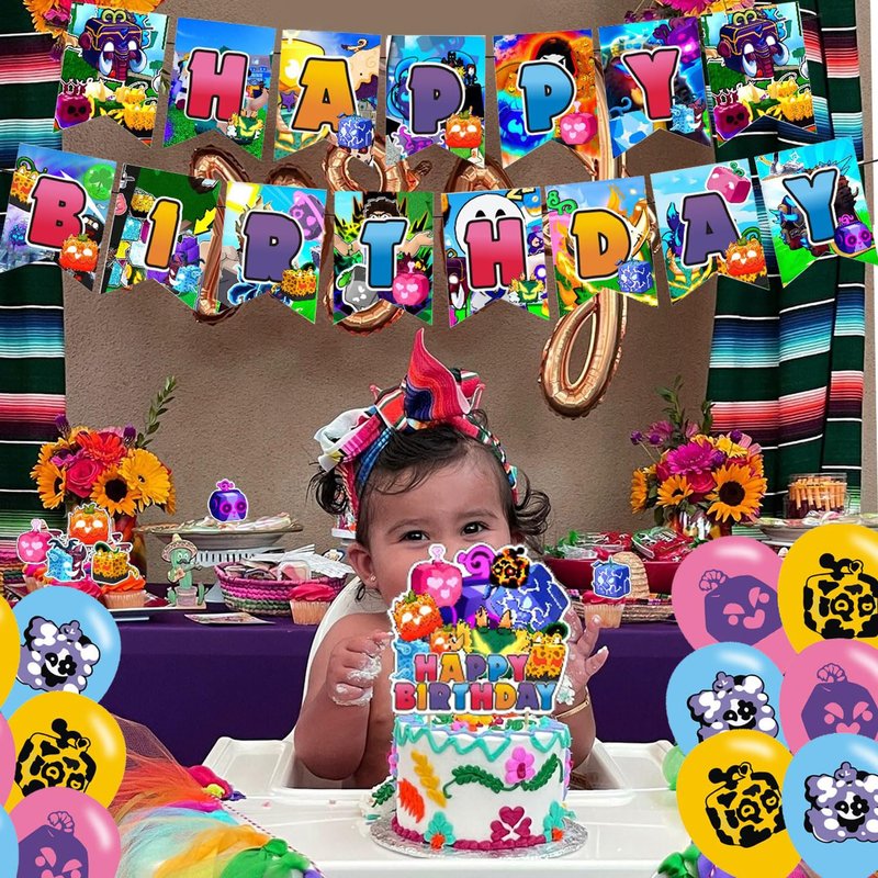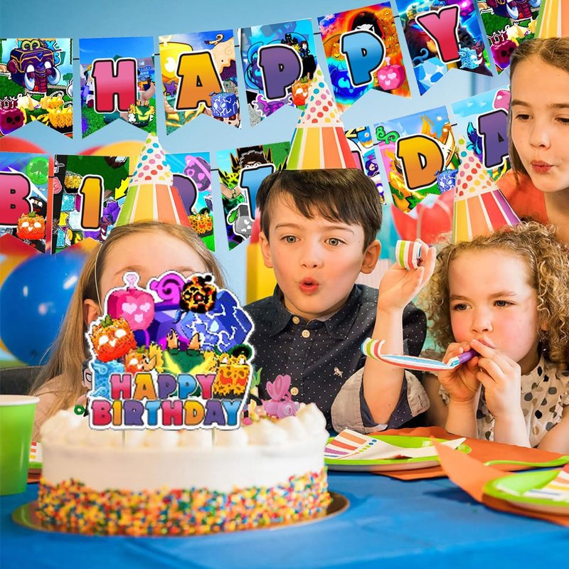 Blox Fruits Party Supplies,Blox Fruits Game Party Decorations Includes Banner, Cake Toppers, Balloon for Blox Game Party Decorations