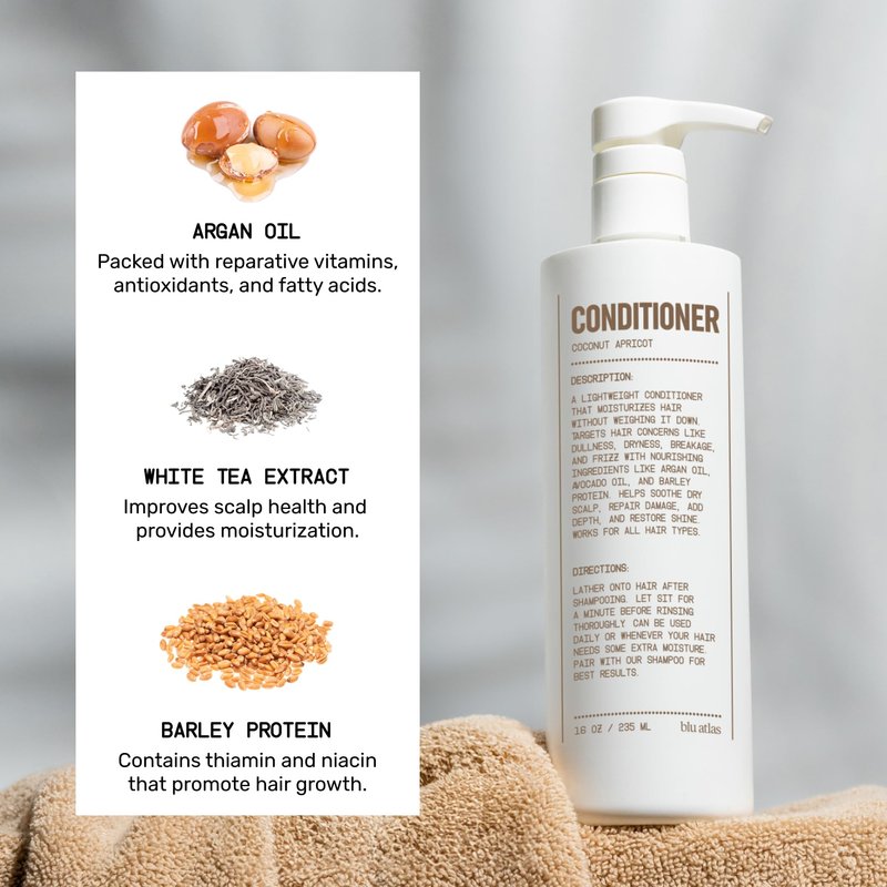 Blu Atlas Mens Conditioner - Coconut Apricot - Hydrating, Nourishing Conditioner for Healthy Hair, All Hair Types - 16 oz Bottle