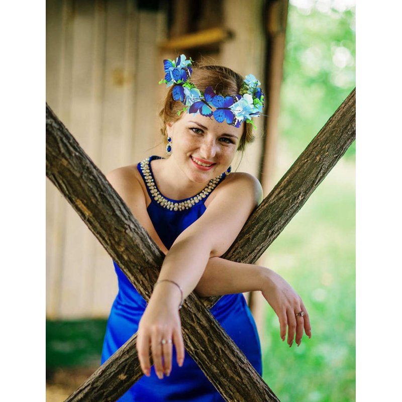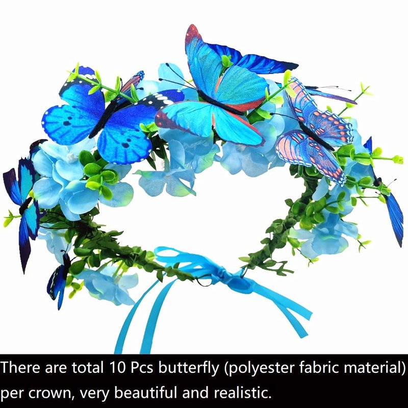 Blue Butterflies Crown Flowers Headband Hair Wreath Floral Garland Headpiece