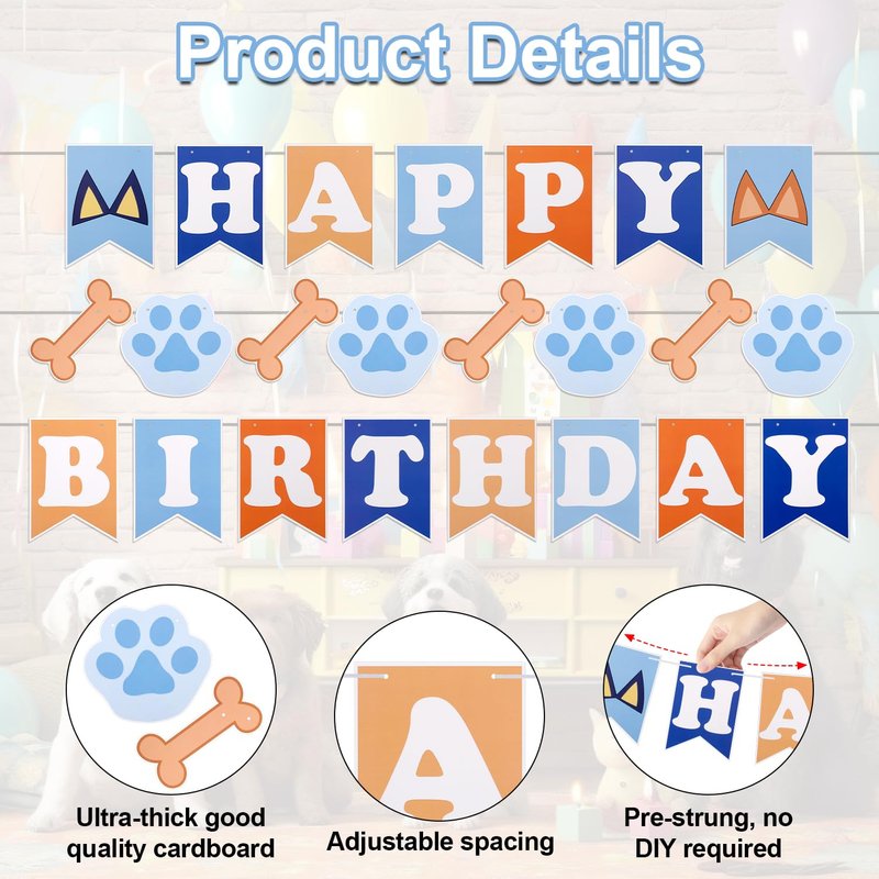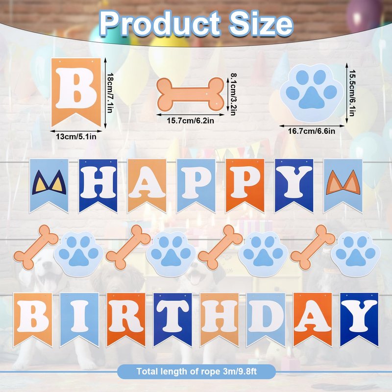 - Package Includes: You will get 1 piece of blue dog happy birthday banner, which has two strings of letters and 1 string of patterns, which can meet your birthday party decoration needs, dog lovers should not miss it.