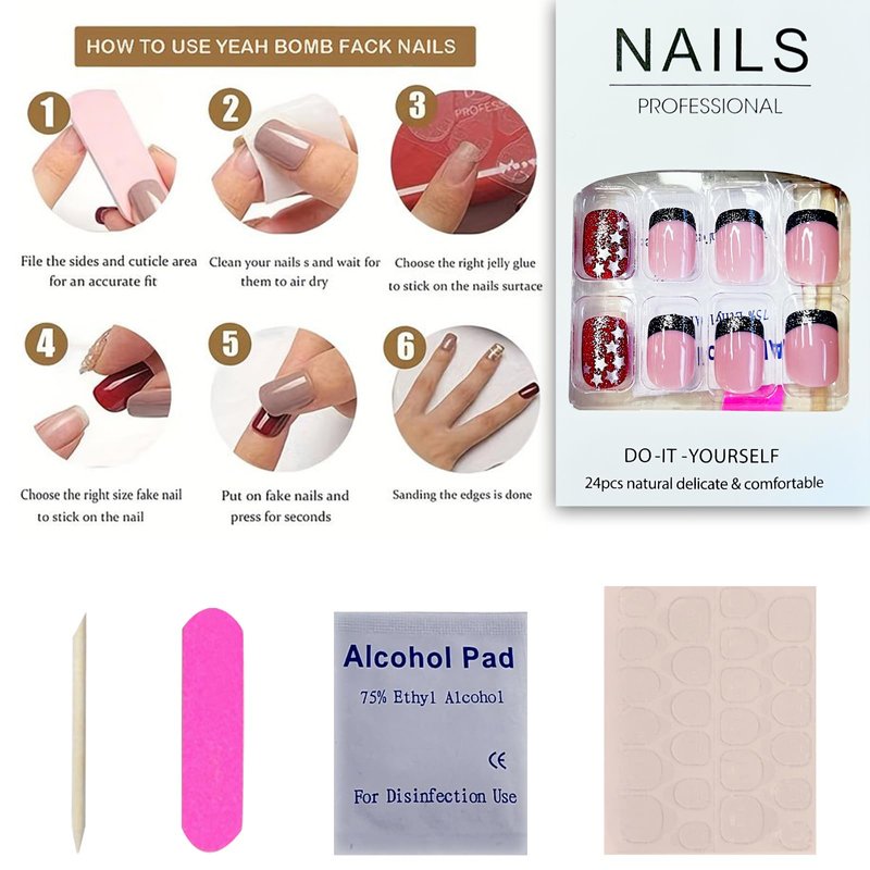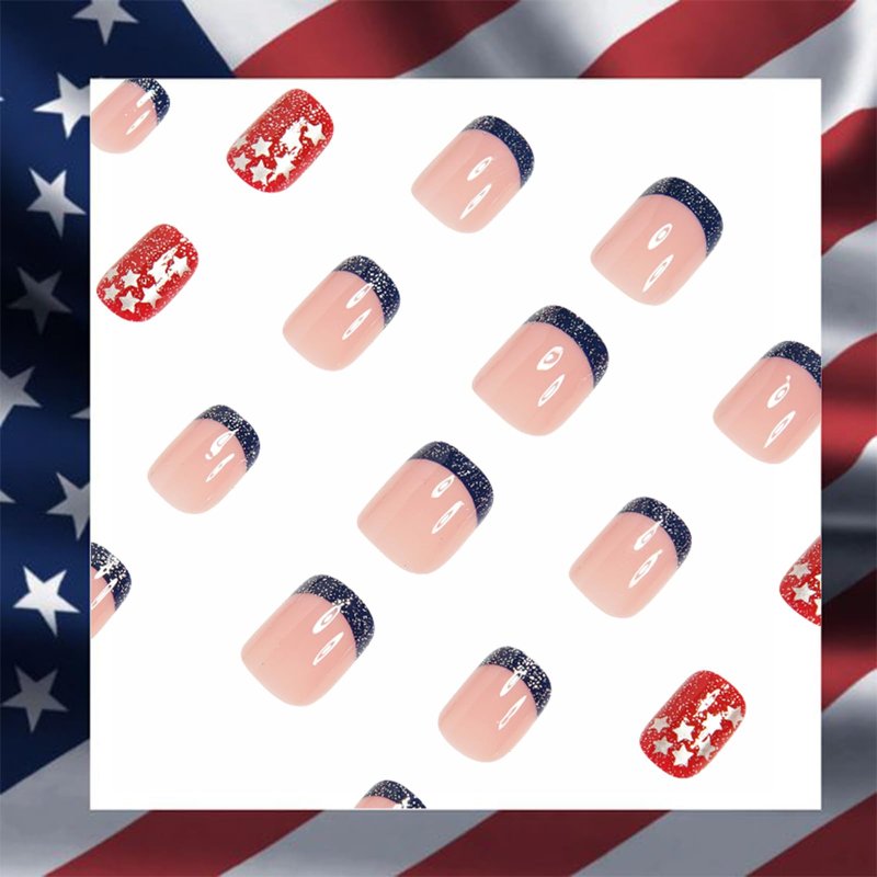 • Packaging includes:You will receive 24 independence day fake nails, 24 jelly glue, 1 small wooden stick, alcohol bag, nail file, no additional tools required.
