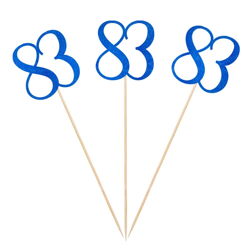 Blue Glitter 83rd Birthday Centerpiece Sticks, 12-Pack Number 83 Table Topper Anniversary Party Decorations